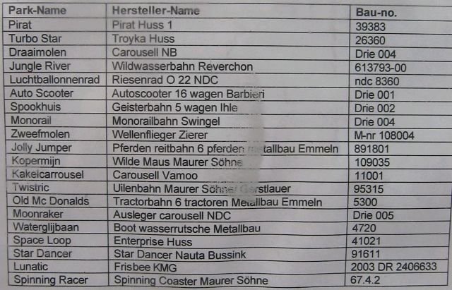 So hier die Typenschilder für Thorsten Troika in Drievliet Frisbee in Duinrell bei den anderen Fahrgeschäften habe ich leider keine Typenschilder gefunden. Mfg Gordian |